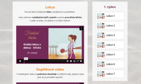 Každý týden získáte přístup ke 4 lekcím cvičení - 2 jsou kratší a 2 delší. Vždy 2 lekce jsou zaměřené více na břicho a 2 na komplexní zapojení celého těla.