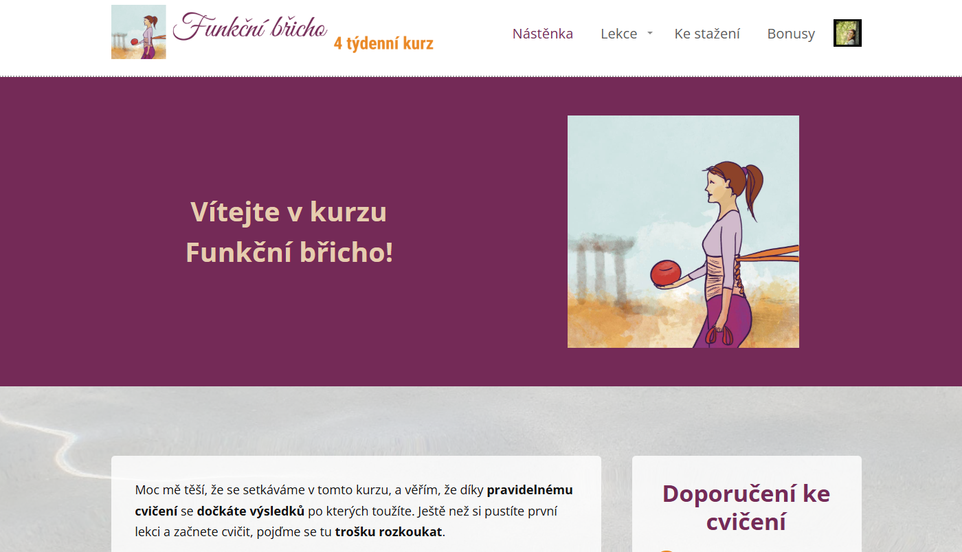 Ihned po uhrazení kurzu dostanete emailem přihlašovací údaje do tzv. členské sekce, která je u mě na webu. Tam najdete vše přehledně na jednom místě. Ke všem lekcím se proklikáte přes menu.