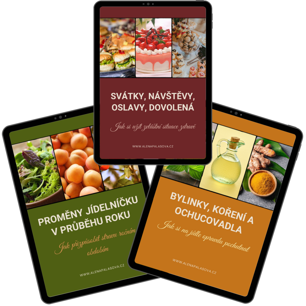 Ty si stáhnete nebo vytisknete a zůstanou vám napořád. Připravila jsem pro vás pdf soubor s jídelníčkem na každý týden. Dále e-booky Snídaně, Svačiny, Obědy, Večeře, abyste nemusela nikde dlouze listovat při hledání inspirace, co vařit. A ještě získáte 3 bonusové e-booky, o kterých se dočtete dále.